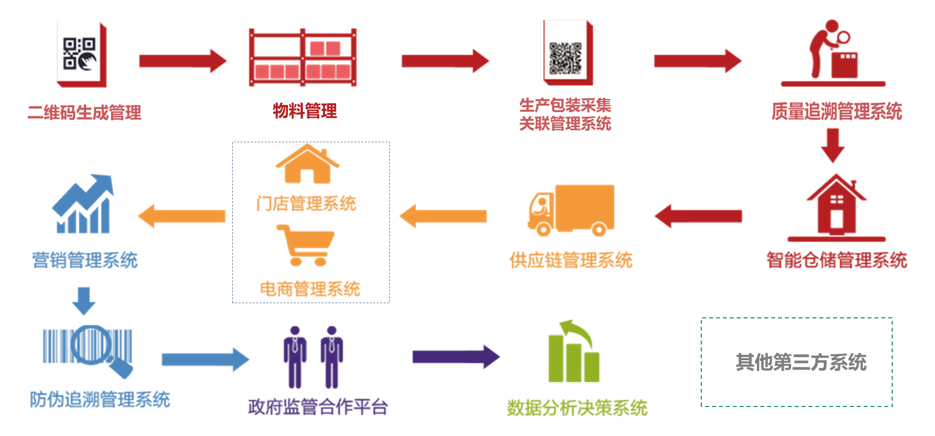 信息化追溯,使產(chǎn)品在供應鏈全程可視化,形成來(lái)源可追溯、去向可查證、責任可追究的追溯鏈條,是國家和企業(yè)質(zhì)量安全管控、凈化市場(chǎng)環(huán)境的必要保障措施;同時(shí)利用云技術(shù)打通消費者、企業(yè)和政府間的信息壁壘,在滿(mǎn)足政府監管和消費者知情權的情況下,推動(dòng)全供應鏈數字化轉型,提升企業(yè)管理水平和品牌形象,實(shí)現智能化產(chǎn)業(yè)升級、構建全新數據生態(tài)系統。